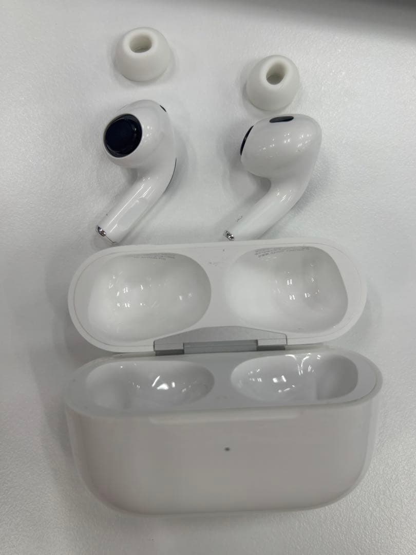 Apple AirPods Pro 第2世代 (MagSafe充電ケース・USB-C) MTJV3J/A商品説明2024年に購入したApple AirPods Pro 第2世代 (MagSafe充電ケース・USB-C) です。問題なく動作し、左右のイヤホンとも正常に聞こえます。新しくAirPods Pro 第3世代を購入したため出品します。日常的に使用していたため、細かなスレはあります。またケースの開閉する部分と裏側に黒ずみがありますが、目立つ大きな傷はありません。(画像の丸で囲った部分参照)アルコールで簡易クリーニング済みです。使用していたイヤーチップは取外してあります。未使用の純正イヤーチップも同封しますので、そちらを付けてお使いください。付属品は本体、充電ケース、未使用イヤーチップ、箱です。(ケーブル等はありません)#AirPods pro 2#エアポッズプロ2#Apple イヤホン| カテゴリー: | テレビ・オーディオ・カメラ>>>ワイヤレスイヤホン・骨伝導イヤホン>>>AirPods本体 |